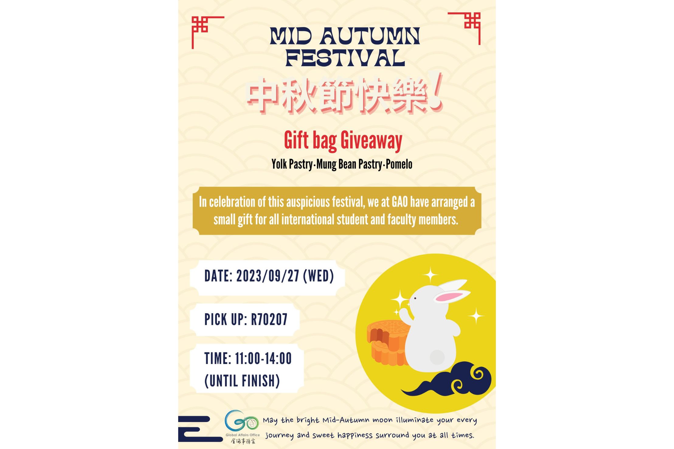 We are pleased to announce a special event to celebrate the Mid-Autumn Festival. As a gesture of blessing and care for our international students and foreign teachers